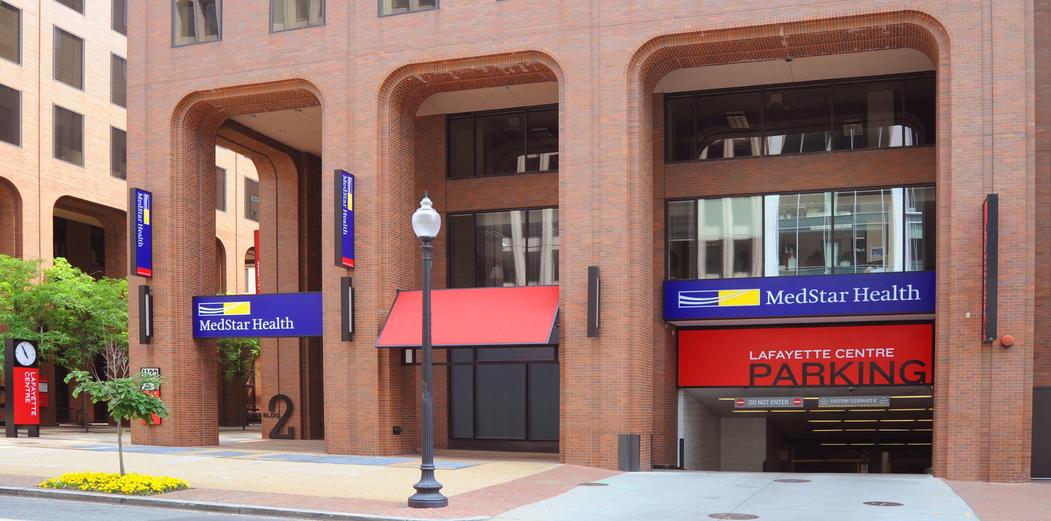 An underground parking garage is available at Building 1 for a rate of $20/day. Please use the parking garage entrance on 20th St. NW.